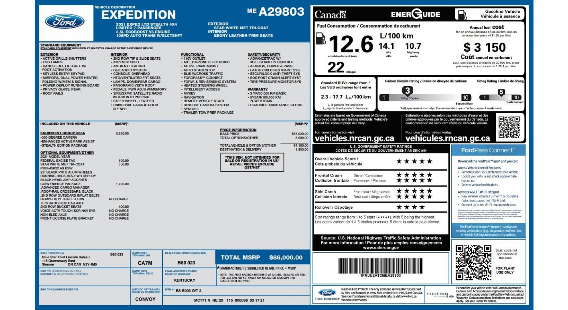 2021 FORD EXPEDITION LTD 3.5L 6 CYLINDER 10-Speed AUTOMATIC